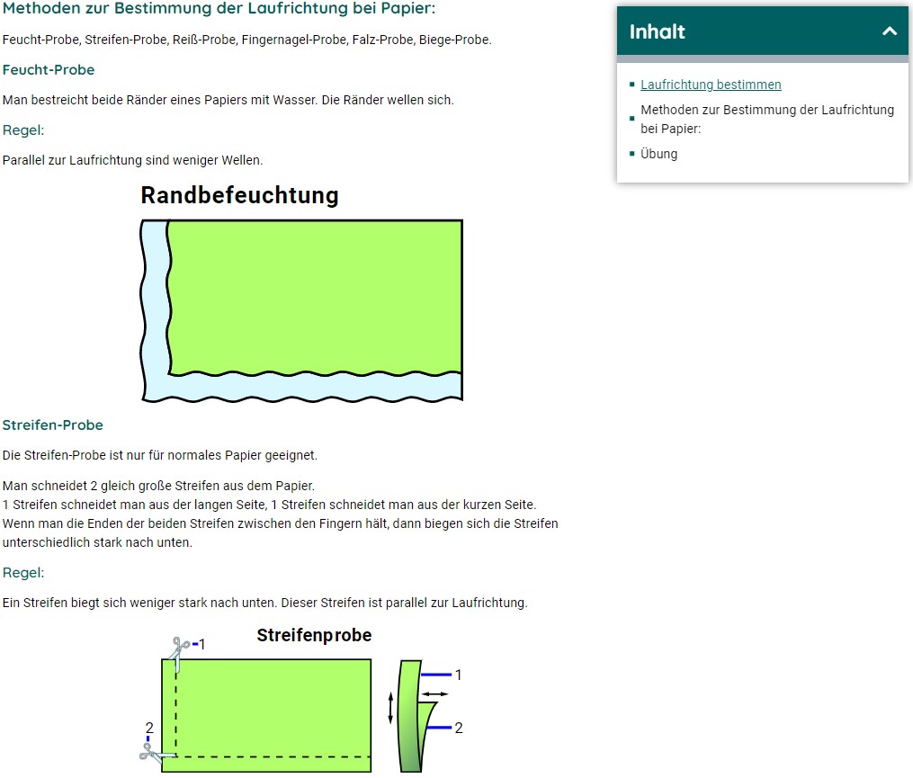 Die Anwendung umfasst über 200 textoptimierte Lernbeiträge mit zugehörigem Glossar und 225 interaktiven Übungsaufgaben. Die Anwendung wurde aus den Inhalten der Brachenlernplattform Mediencommunity (www.mediencommunity.de) abgeleitet und ergänzt. Sie wurde speziell für die theoriereduzierte Ausbildung der Druckindustrie entwickelt und nutzt zur Textoptimierung Regeln der Einfachen Sprache.