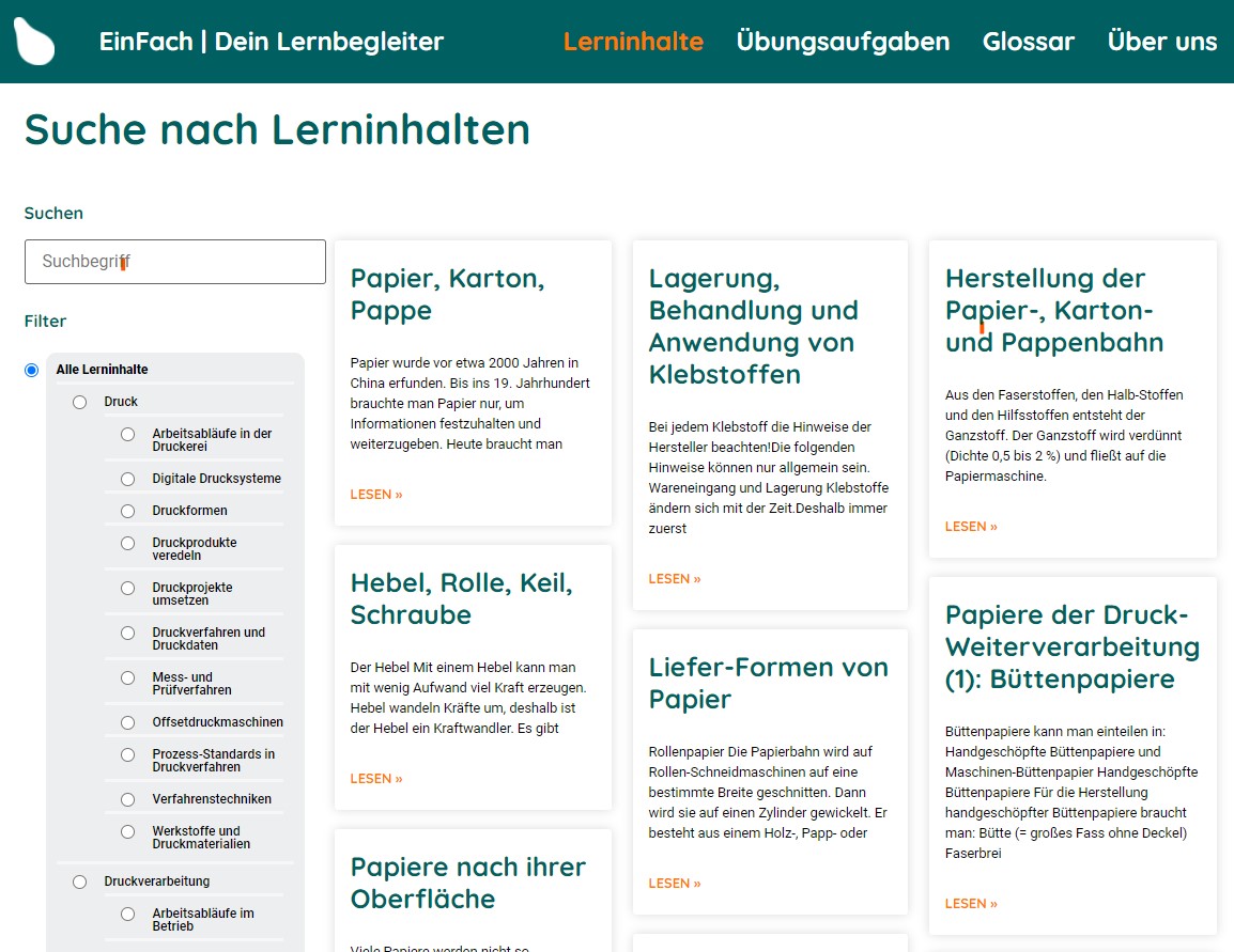 Mit der neuen LernApp EinFach – Dein Lernbegleiter gibt es unter einfach.zfamedien.de ein neues digitales Lernangebot für Drucktechnik und Druckverarbeitung.
